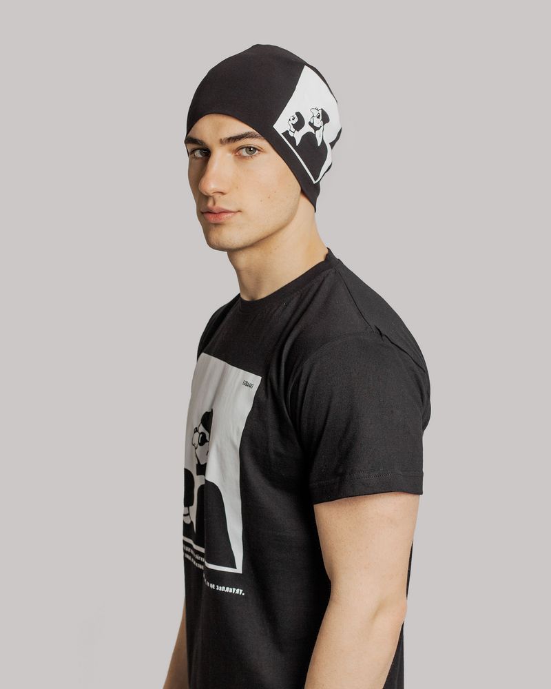 Дизайн принта: Яков Коган.Тонкая трикотажная шапка — важный элемент тренировочной экипировки в прохладную погоду или просто модная деталь образа.