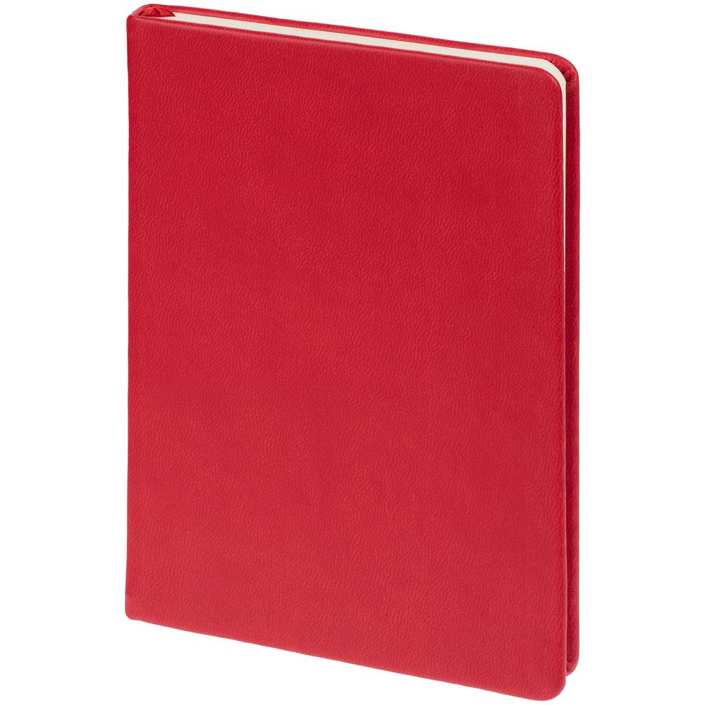 Твердая обложка из материала Latte, красный, ляссе в цвет обложки.