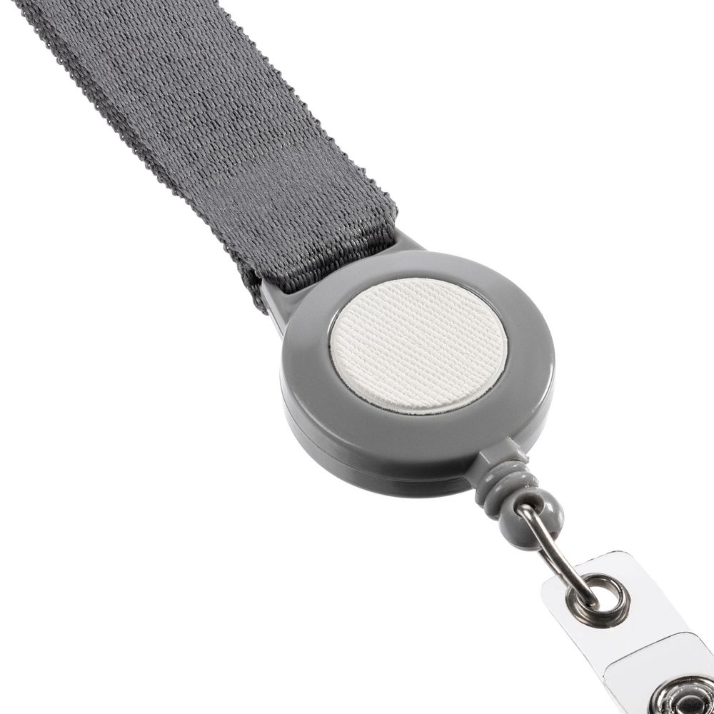 Чехол для пропуска из искусственного материала с пластиковым окошком, прикрепленный пластиковым клипом к ретрактору и ленте.