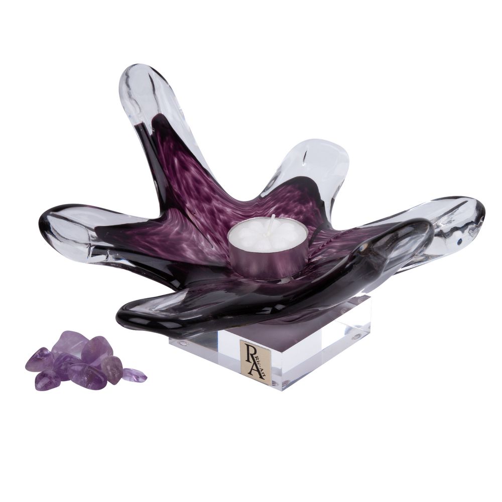 Самыми яркими предметами в коллекции Ric Art стали подставки из художественного стекла и аметиста. Неповторимость фактуры и рисунка делает уникальным каждое изделие. Такая подставка для мелочей позволит украсить интерьер любого офиса или кабинета, а использованная в качестве подсвечника поможет создать неповторимый романтический вечер.