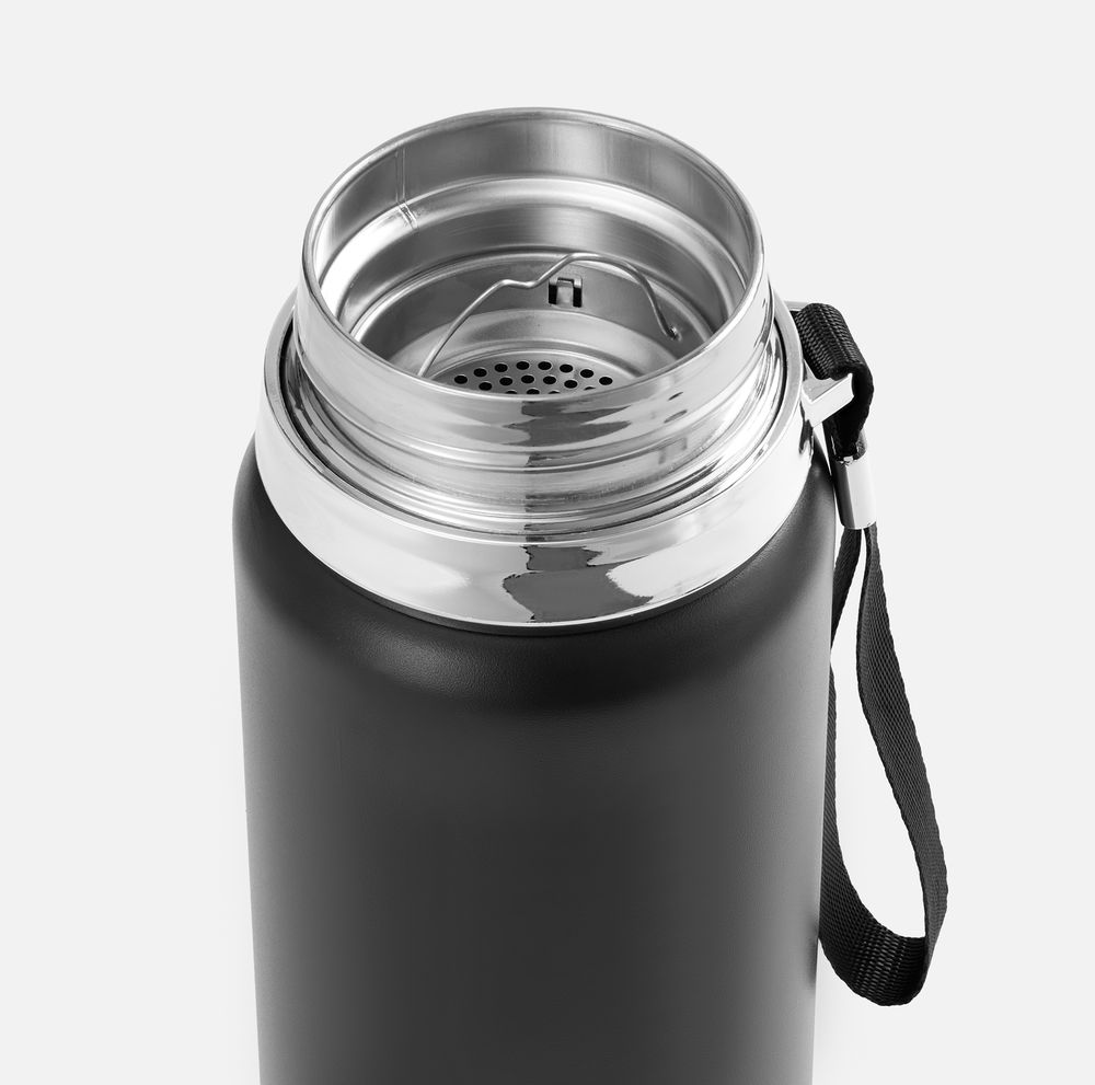 Съемное ситечко помогает удобно и аккуратно заварить в термосе чай, кофе или травяной сбор.