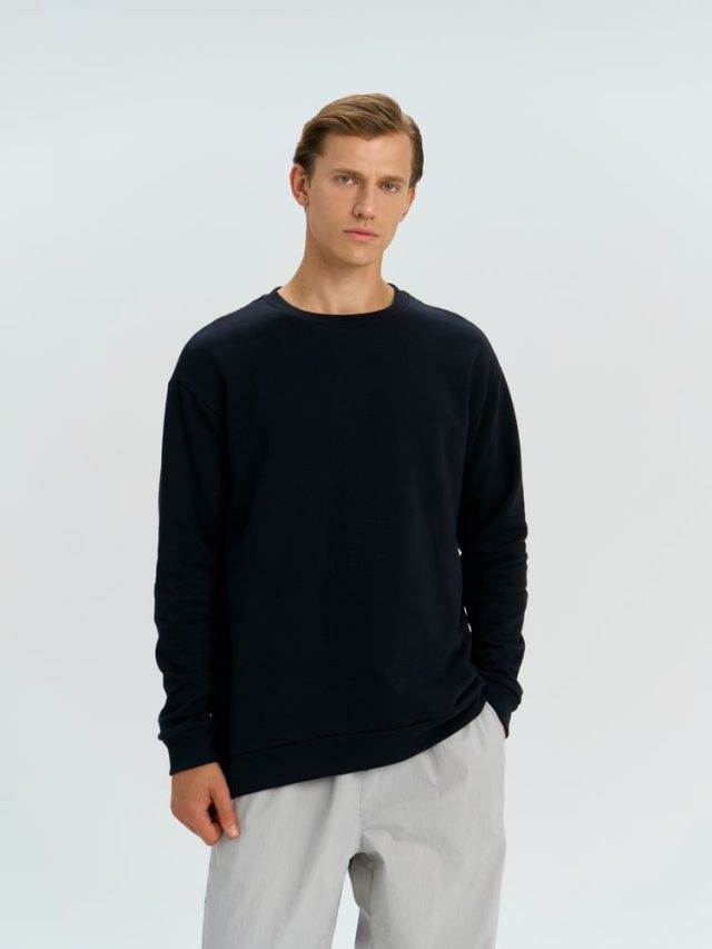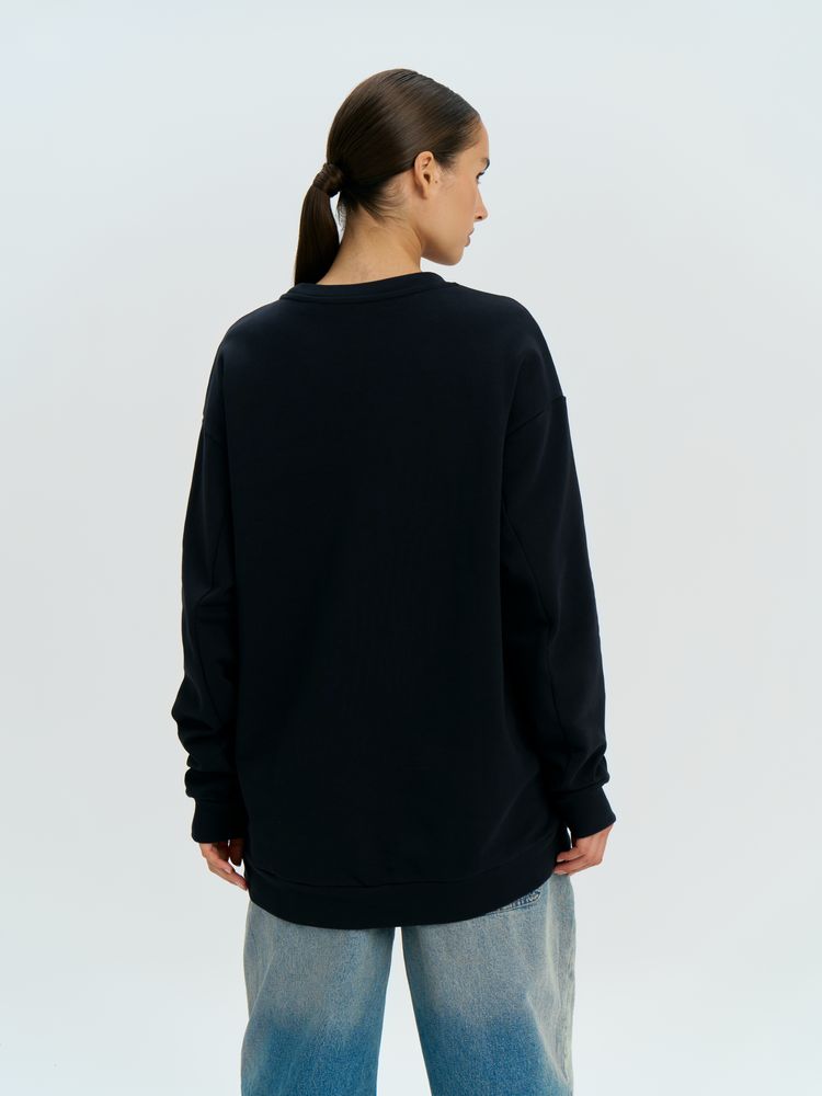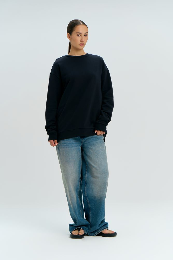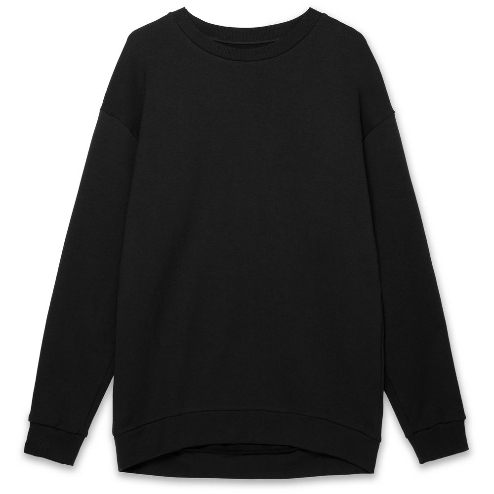 Свитшот унисекс со спущенным плечом и удлиненной спинкой.
