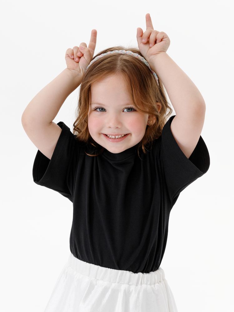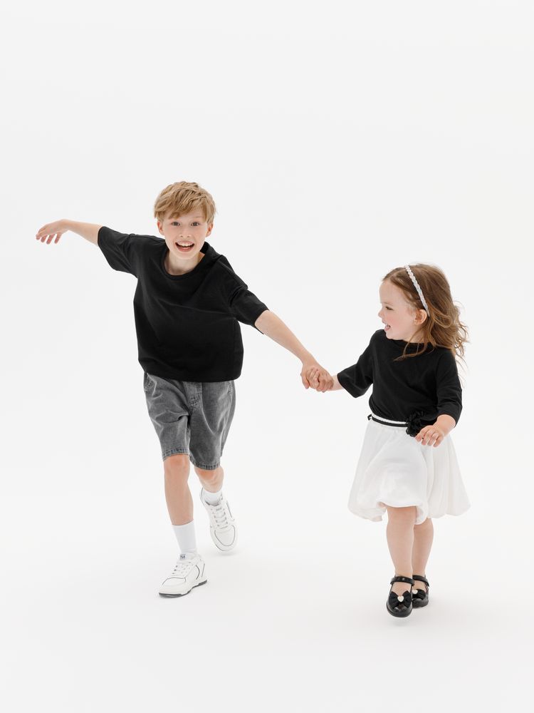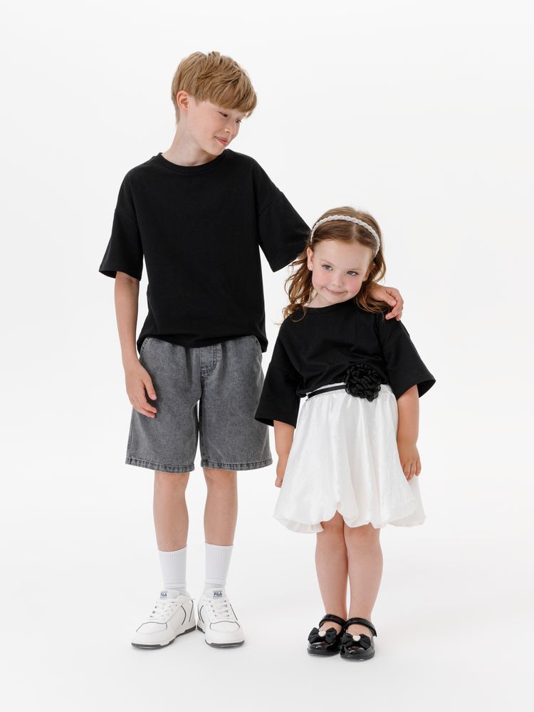 Детская футболка оверсайз из гребенного хлопка с эластаном не стесняет движений и создает модный силуэт.