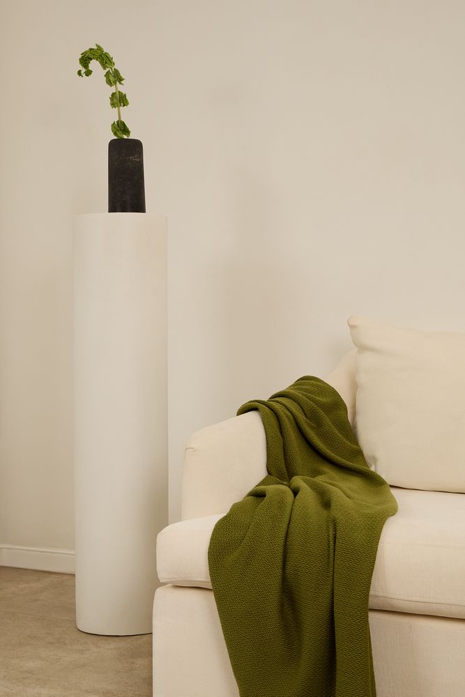 Плед из полушерстяной пряжи, поэтому прекрасно согревает и неприхотлив в уходе.