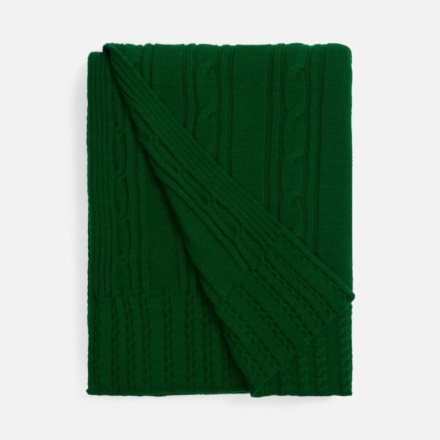 Тонкое переплетение вертикальных кос-жгутов создает благородный стиль, где простота линий встречается с изысканной рельефной текстурой. Плед из мягкого акрила сохраняет тепло, оставаясь удивительно легким и воздушным.