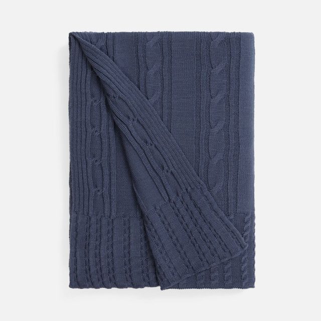 Тонкое переплетение вертикальных кос-жгутов создает благородный стиль, где простота линий встречается с изысканной рельефной текстурой. Плед из мягкого акрила сохраняет тепло, оставаясь удивительно легким и воздушным.
