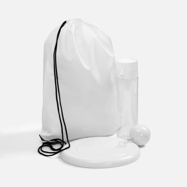 • Практичность — бутылка, тарелка-фрисби и дождевик в футляре решают базовые потребности на отдыхе.