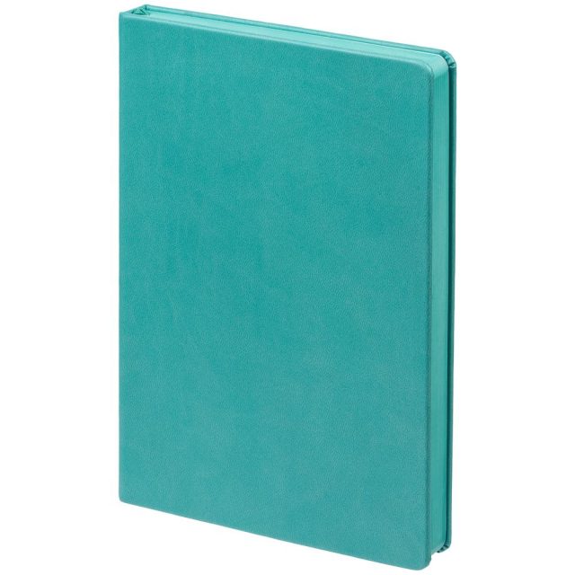 Ежедневник с твердой обложкой и тонированным обрезом. Выполнен из материала Latte, бирюзовый, дополнен ляссе в цвет обложки.