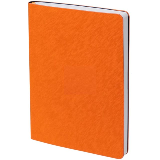 Ежедневник с гибкой обложкой, выполнен из материалов Nice Touch, оранжевый ОО и Bilberry, темно-синий ХХ (внутренний материал), дополнен ляссе в цвет обложки.