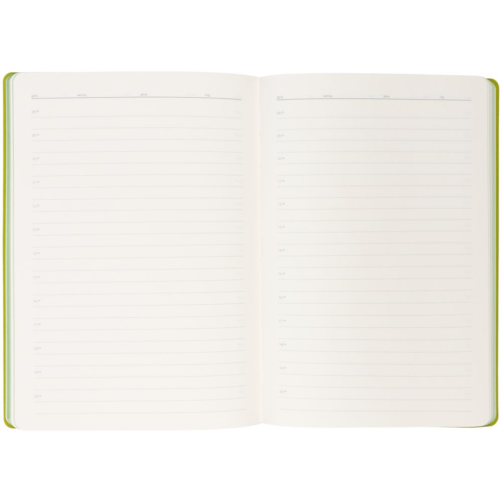 Гибкая обложка ежедневника выполнена из материала Soft Touch Pearl, черный АА и цветного Latte (внутренняя часть обложки).