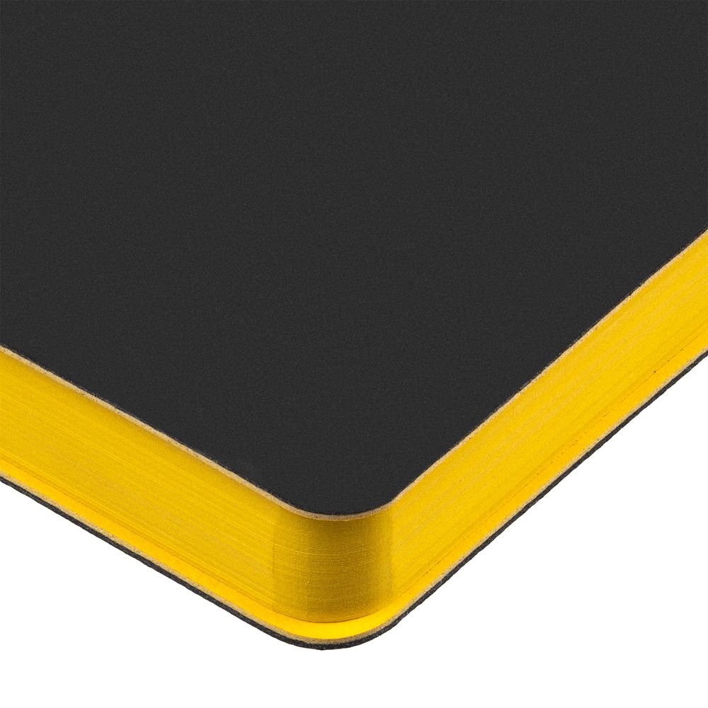 Гибкая обложка ежедневника выполнена из материала Soft Touch Pearl, черный АА и цветного Latte (внутренняя часть обложки).
