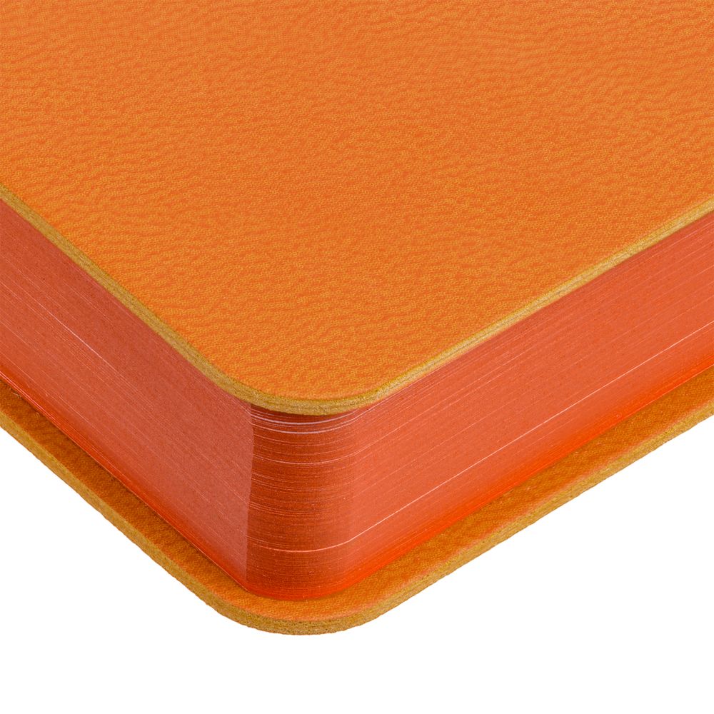 Ежедневник с гибкой обложкой, выполнен из материала Latte, оранжевый ОО. Внутри корешка — специальное место для крепления ручки размером до 15х0,9 см.