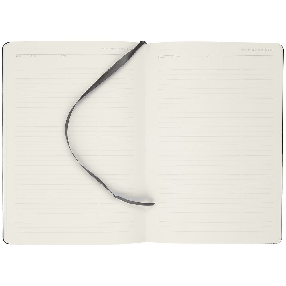Ежедневник с гибкой обложкой, выполнен из материала Latte, серый, дополнен ляссе в цвет обложки.