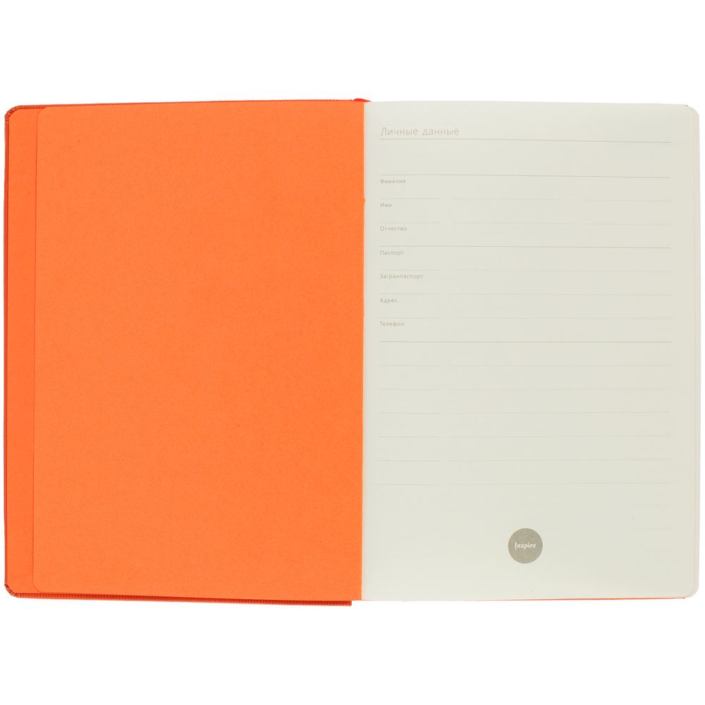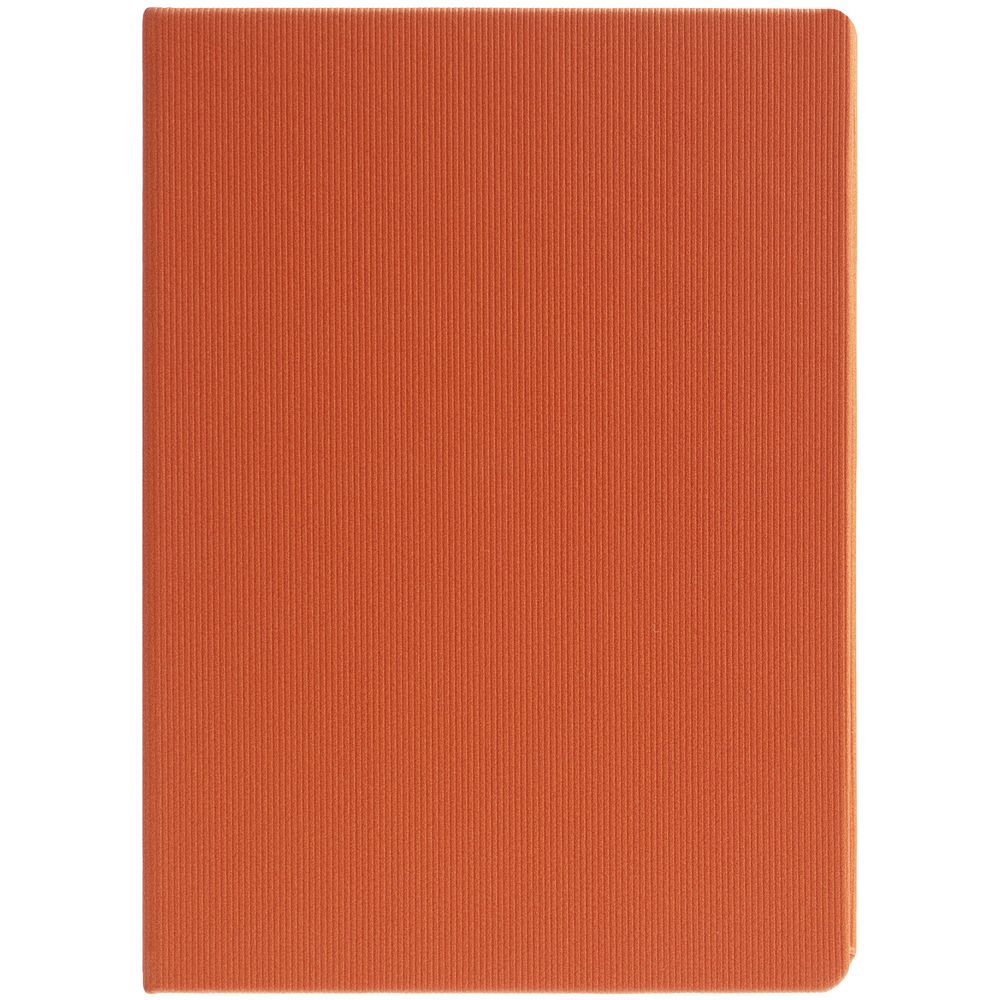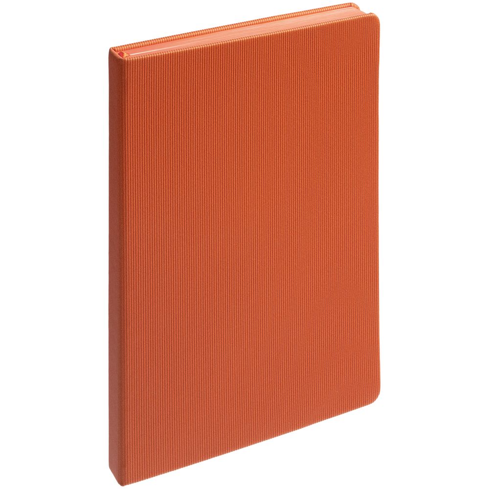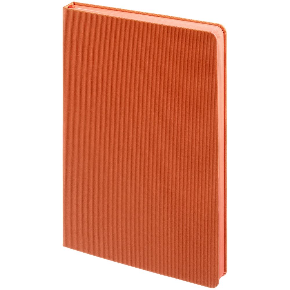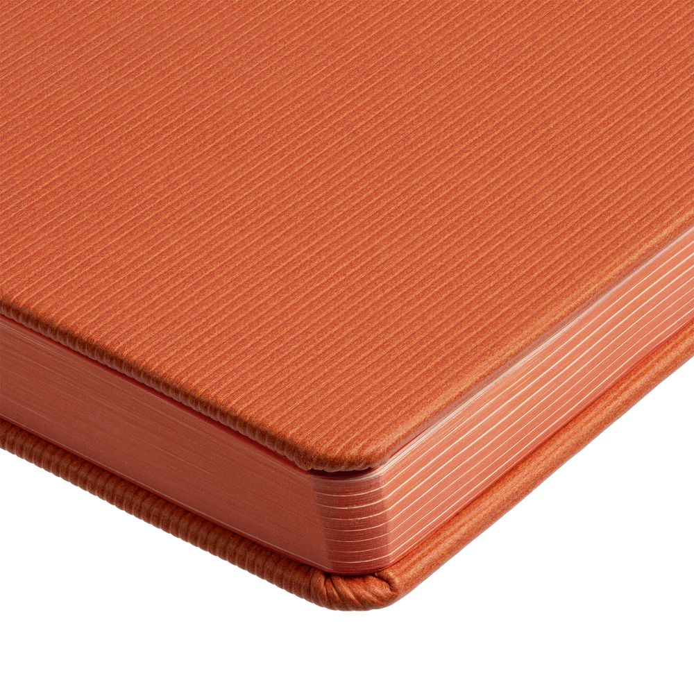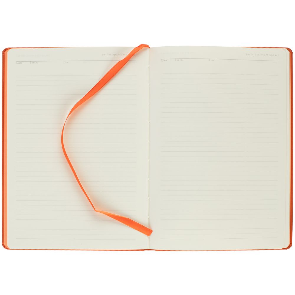 Ежедневник с твердой обложкой и тонированным обрезом. Выполнен из материала Rain, оранжевый, дополнен ляссе в цвет обложки.
