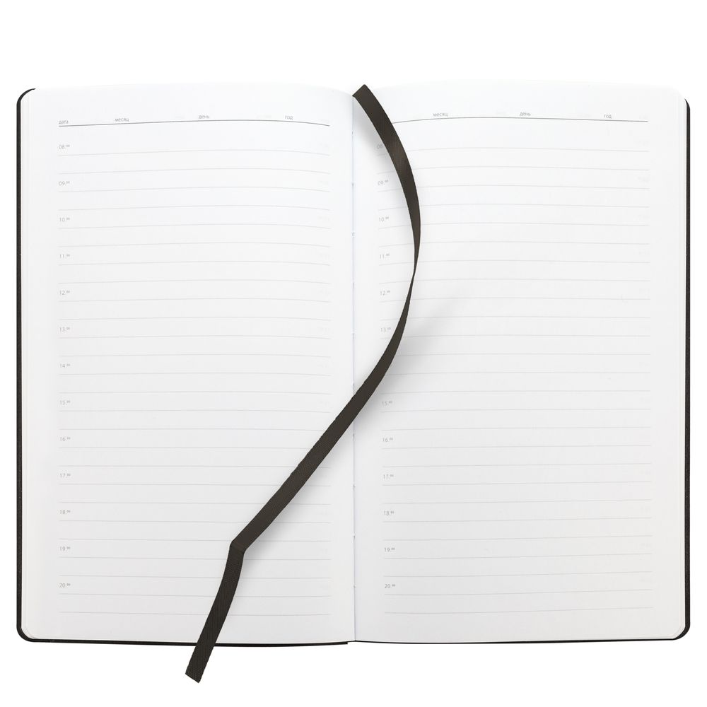 Ежедневник с гибкой обложкой, выполнен из материала Canyon, черный АА, дополнен ляссе в цвет обложки. Блинтовое тиснение на обложке создает эффект вязаного полотна.