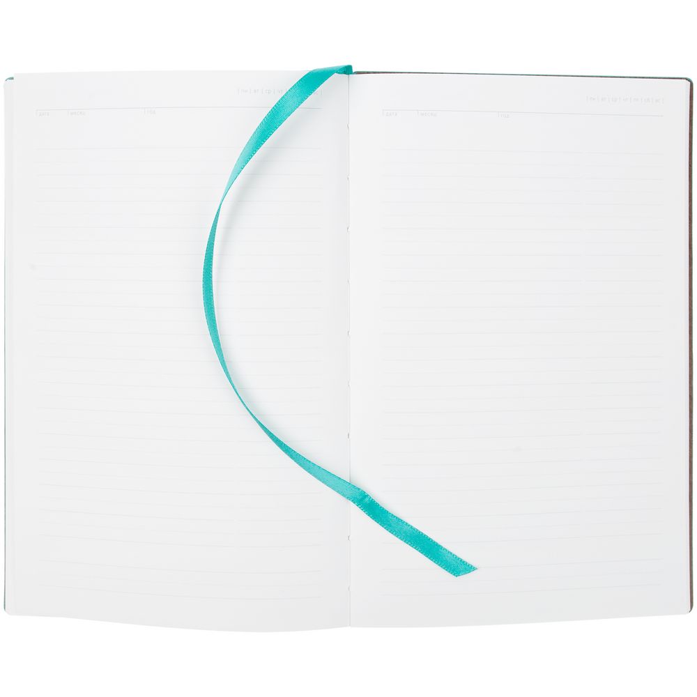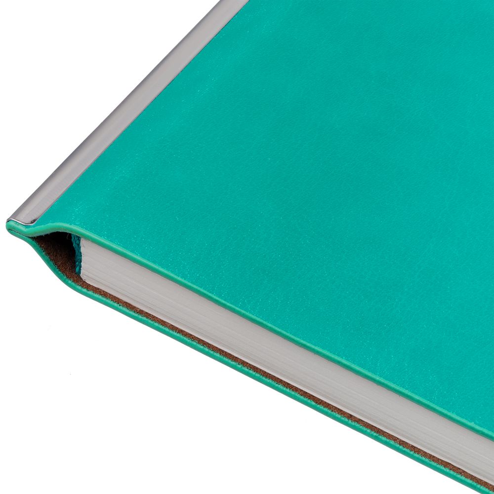 Ежедневник с гибкой обложкой, выполнен из материала Waltz, дополнен металлическим хромированным корешком. Корешек оклеен бирюзовой пленкой для защиты от царапин, снимите ее перед использованием.