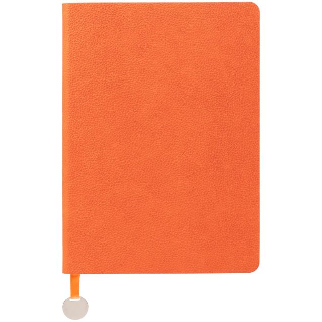 Ежедневник с гибкой обложкой, выполнен из материал La Fite, оранжевый ОО, дополнен ляссе в цвет обложки с металлическим шильдом.