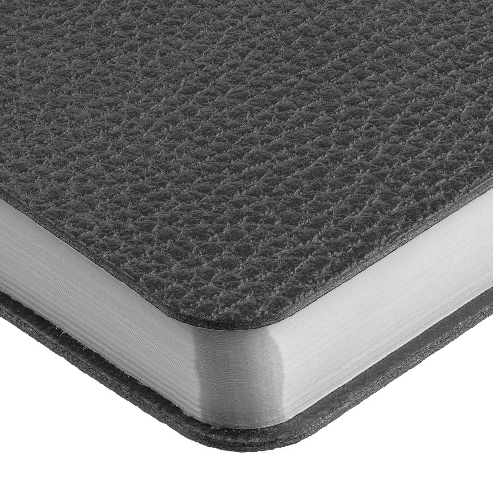 Ежедневник с гибкой обложкой, выполнен из материала La Fite, темно-серый ЕЕ, дополнен ляссе в цвет обложки с металлическим шильдом.