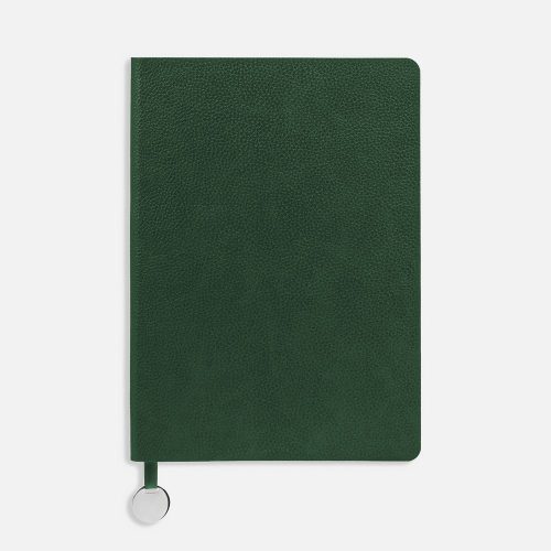 Ежедневник с гибкой обложкой, выполнен из материала La Fite, зеленый, дополнен ляссе в цвет обложки с металлическим шильдом.