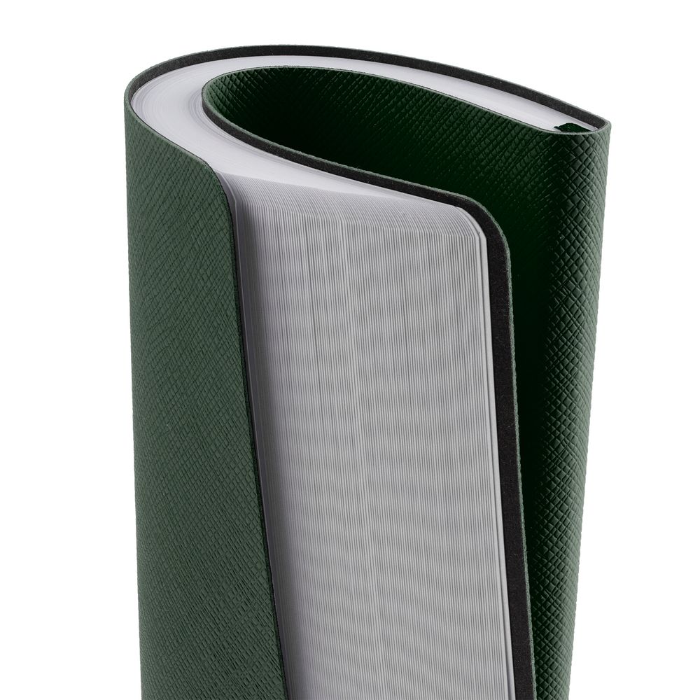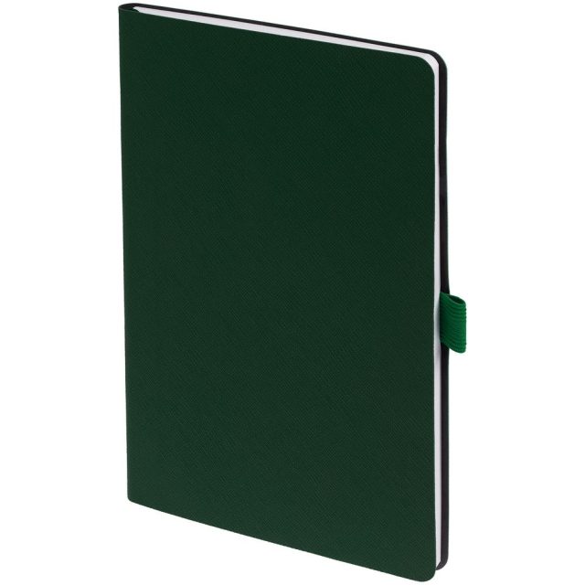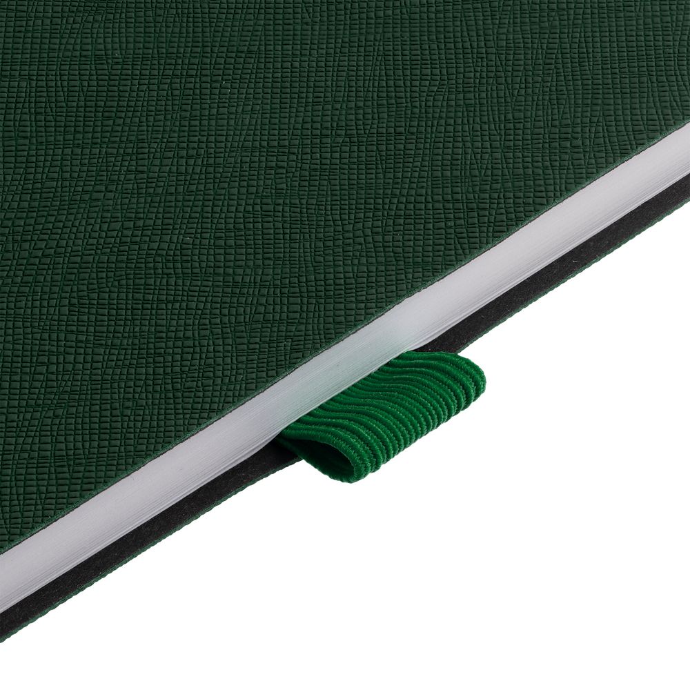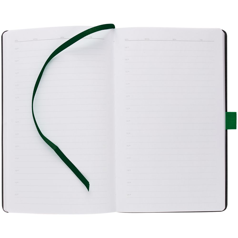 Ежедневник с гибкой обложкой, выполнен из материала Nice Touch, зеленый FF, дополнен цветными ляссе и петлей-резинкой для ручки.