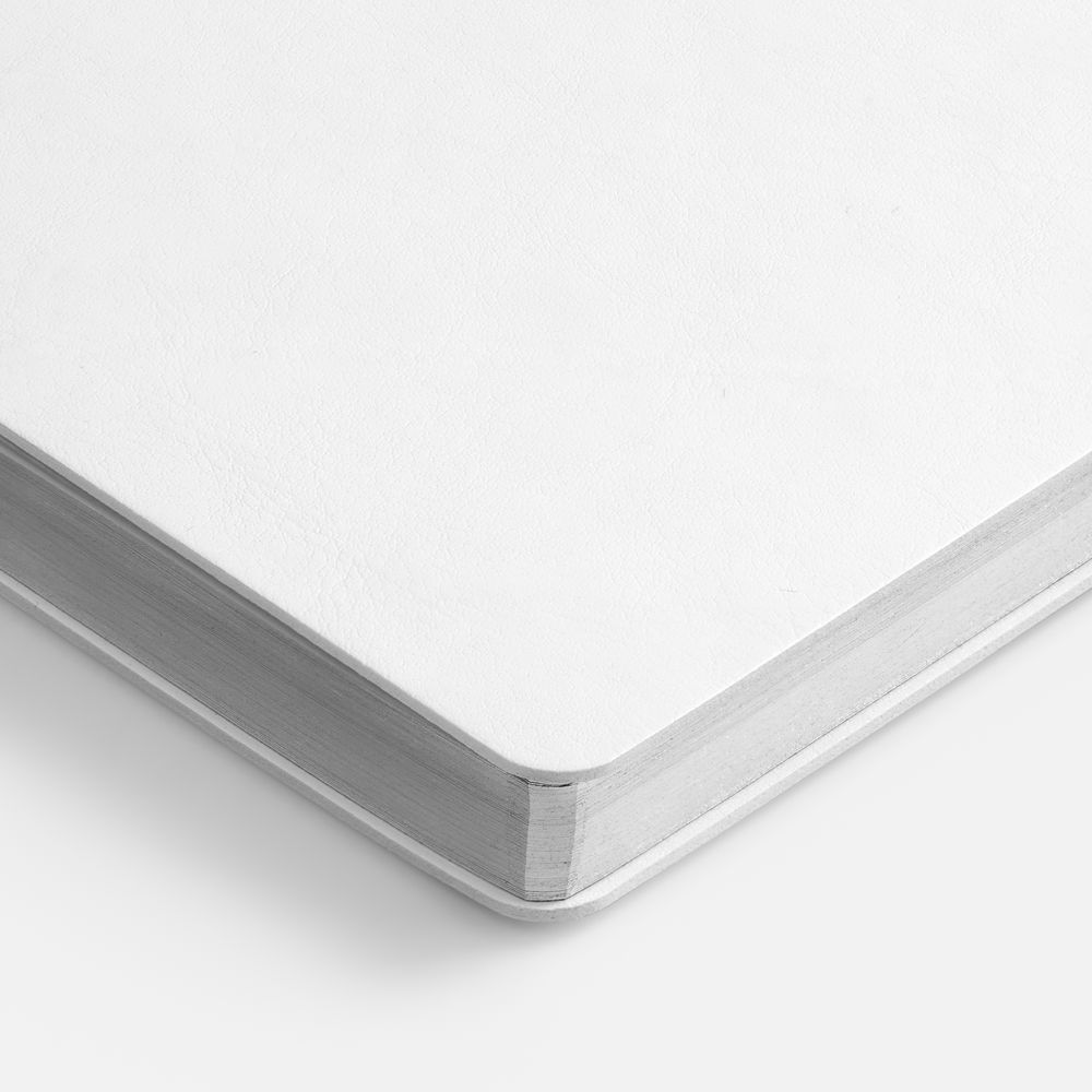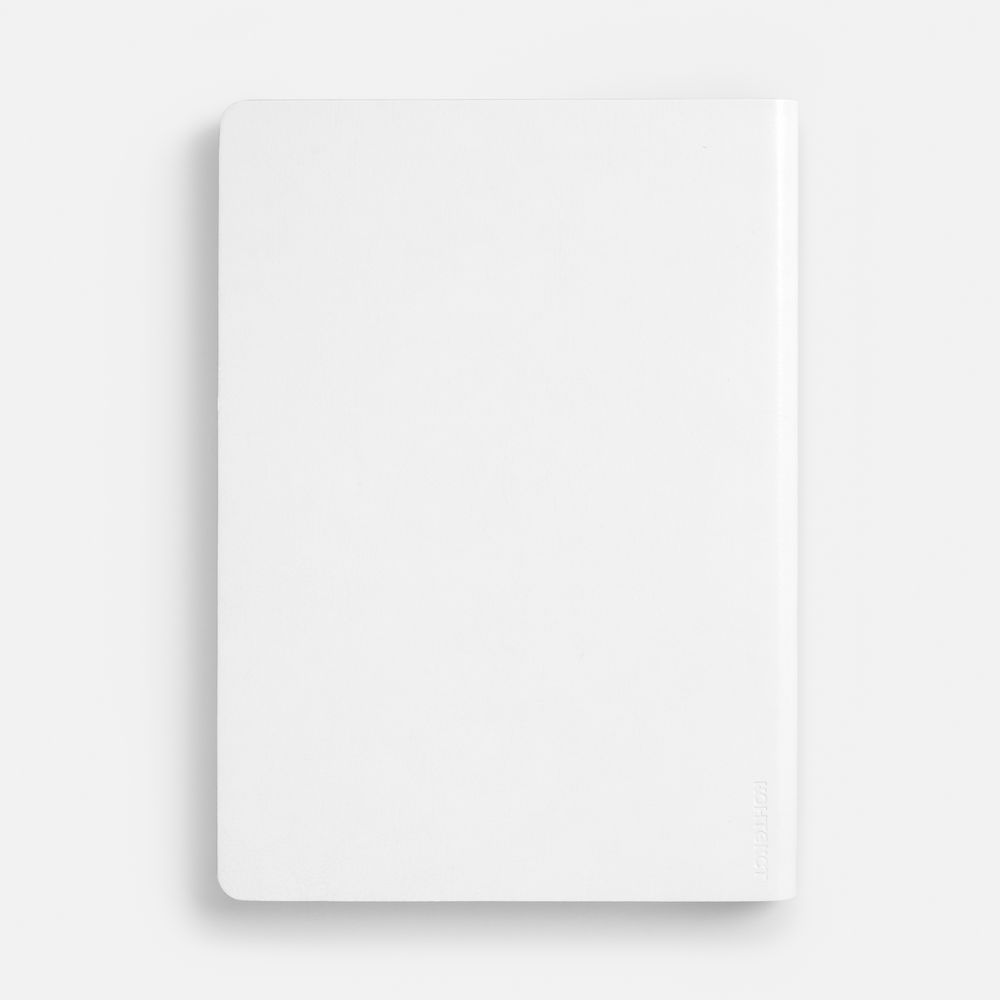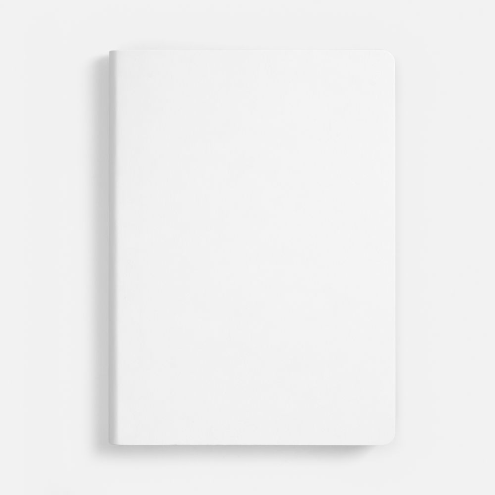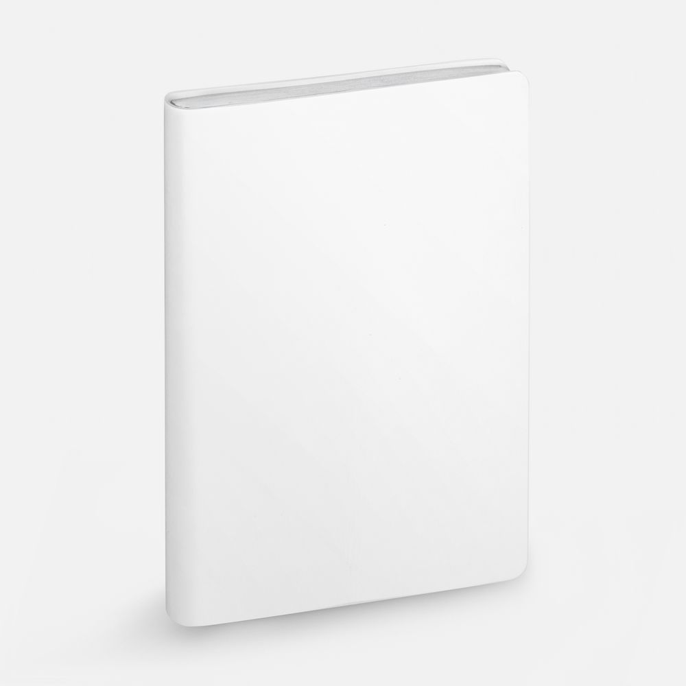 Ежедневник с гибкой обложкой, выполнен из материала Nebraska, белый BB (внутри и снаружи), дополнен ляссе белого цвета.