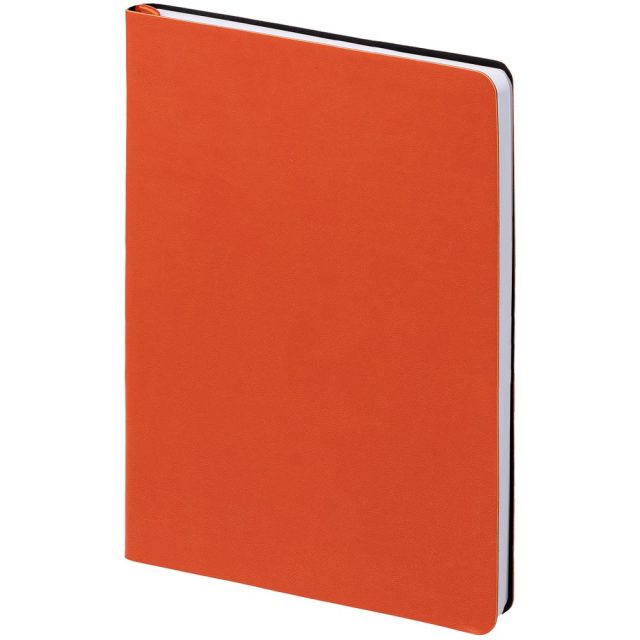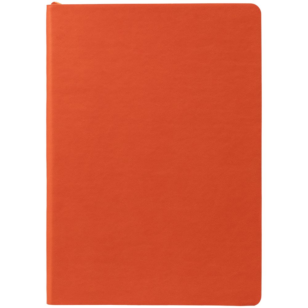 Ежедневник с гибкой обложкой, выполнен из материала Latte, оранжевый, дополнен ляссе в цвет обложки.