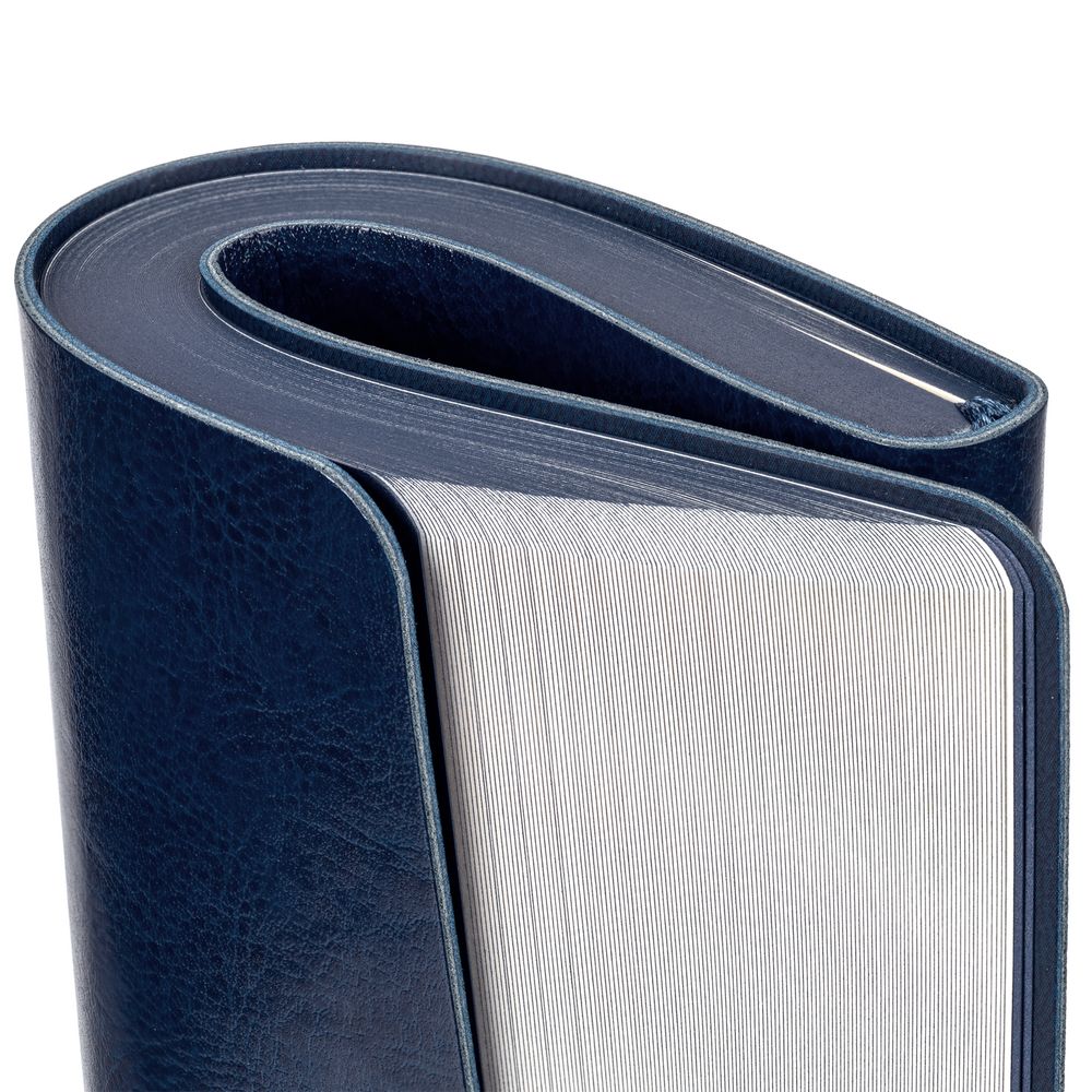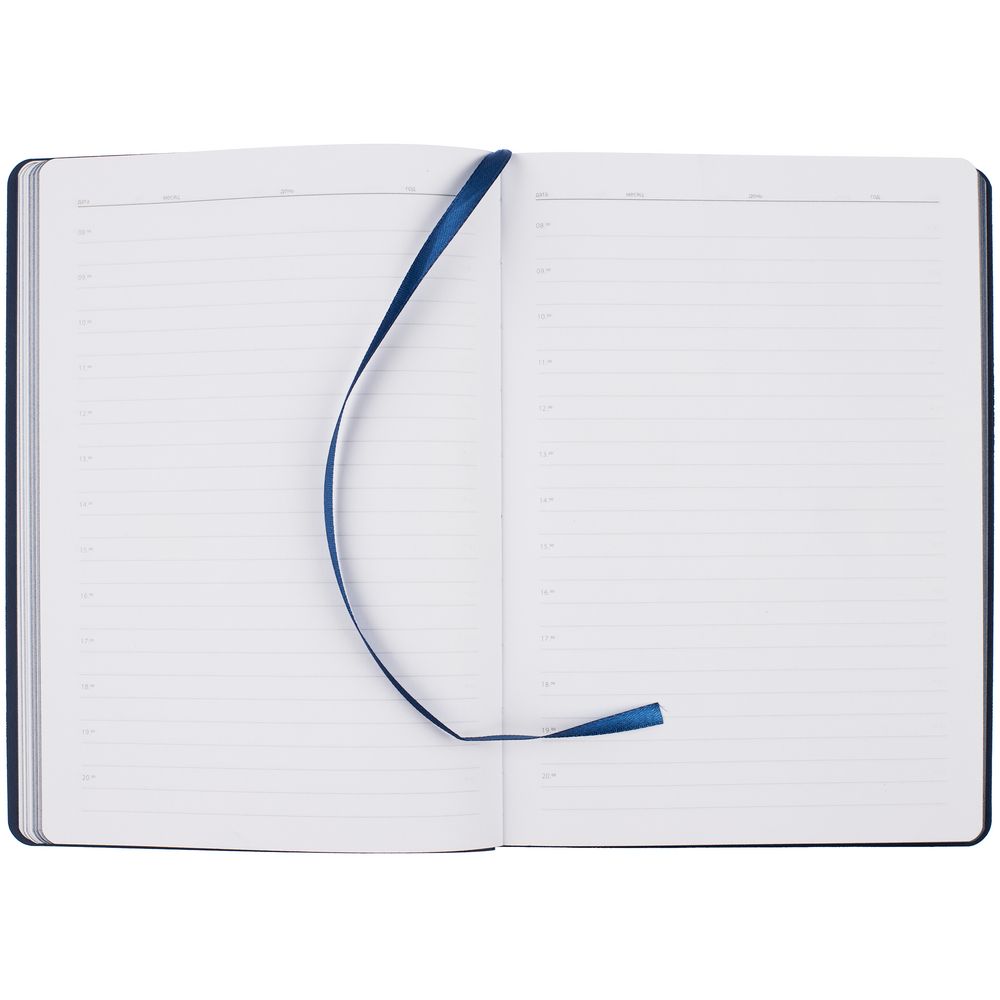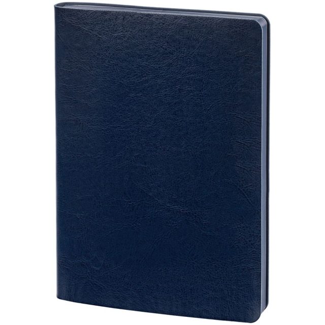 Ежедневник с гибкой обложкой, выполнен из материала Vintage, темно-синий ХХ и Latte, темно-синий ХХ, дополнен ляссе в цвет обложки.