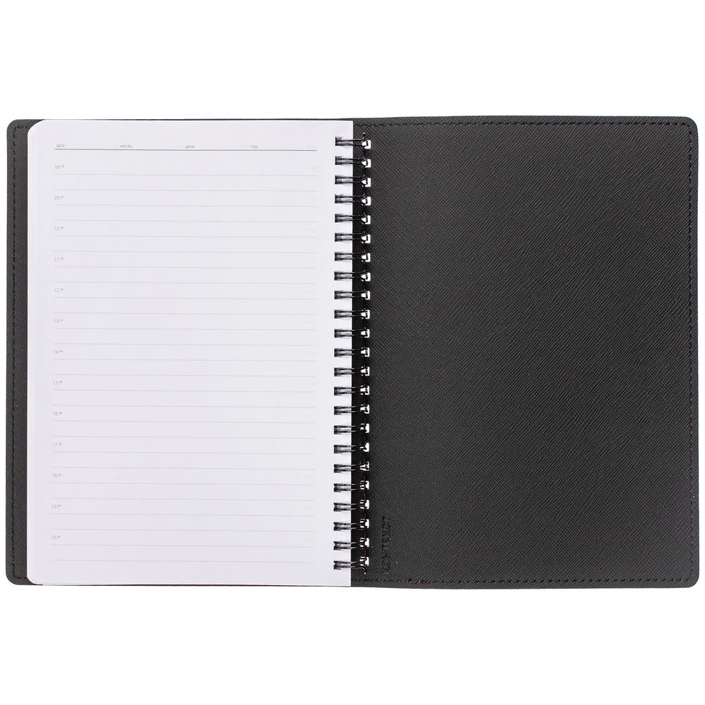 Ежедневник с гибкой обложкой, выполнен из материалов Soft Touch Ultra, голубой JJ и Nice touch, черный АА.
