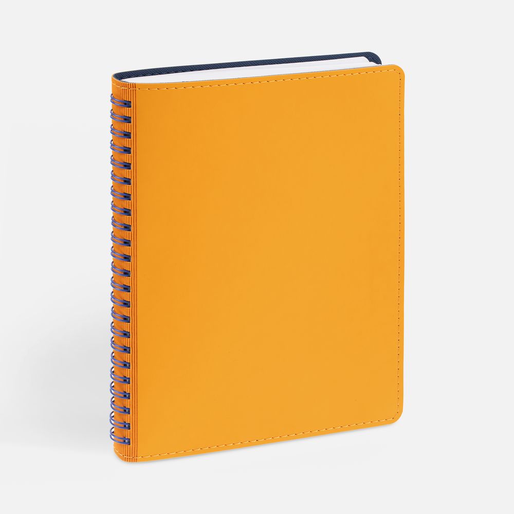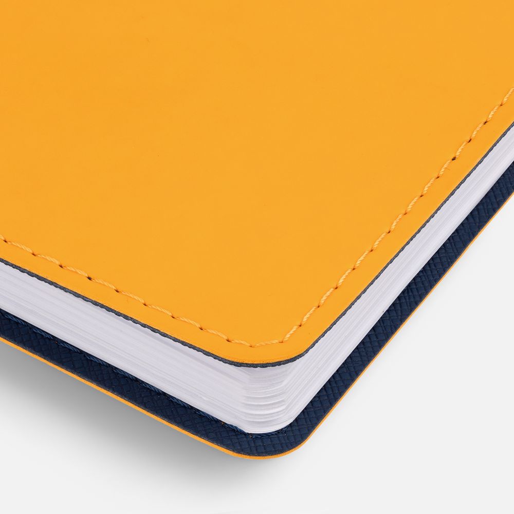 Ежедневник с гибкой обложкой, выполнен из материалов Soft Touch, желтый КК и Nice Touch, темно-синий ХХ.