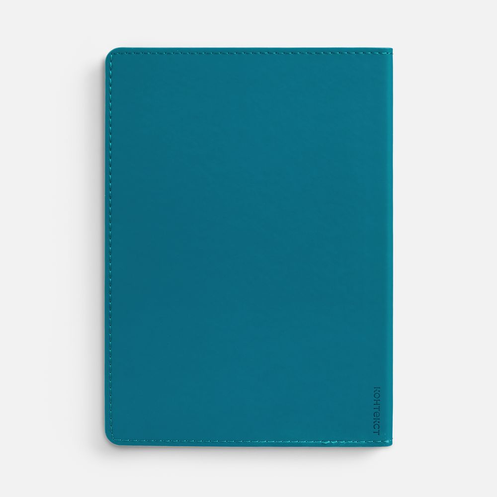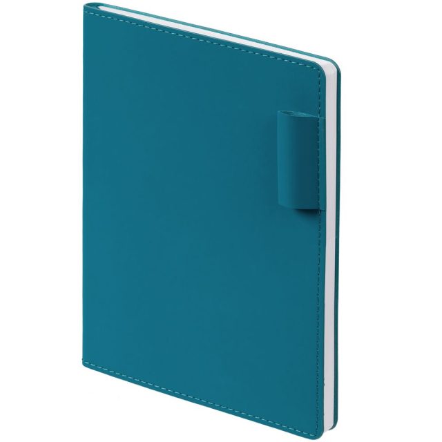 Ежедневник с гибкой обложкой из материала Soft Touch, цвет морской волны II и Latte, морская волна (внутренний материал), дополнен петелькой для ручки из покровного материала, капталом, ляссе и закрашенным срезом обложки в цвет материала.