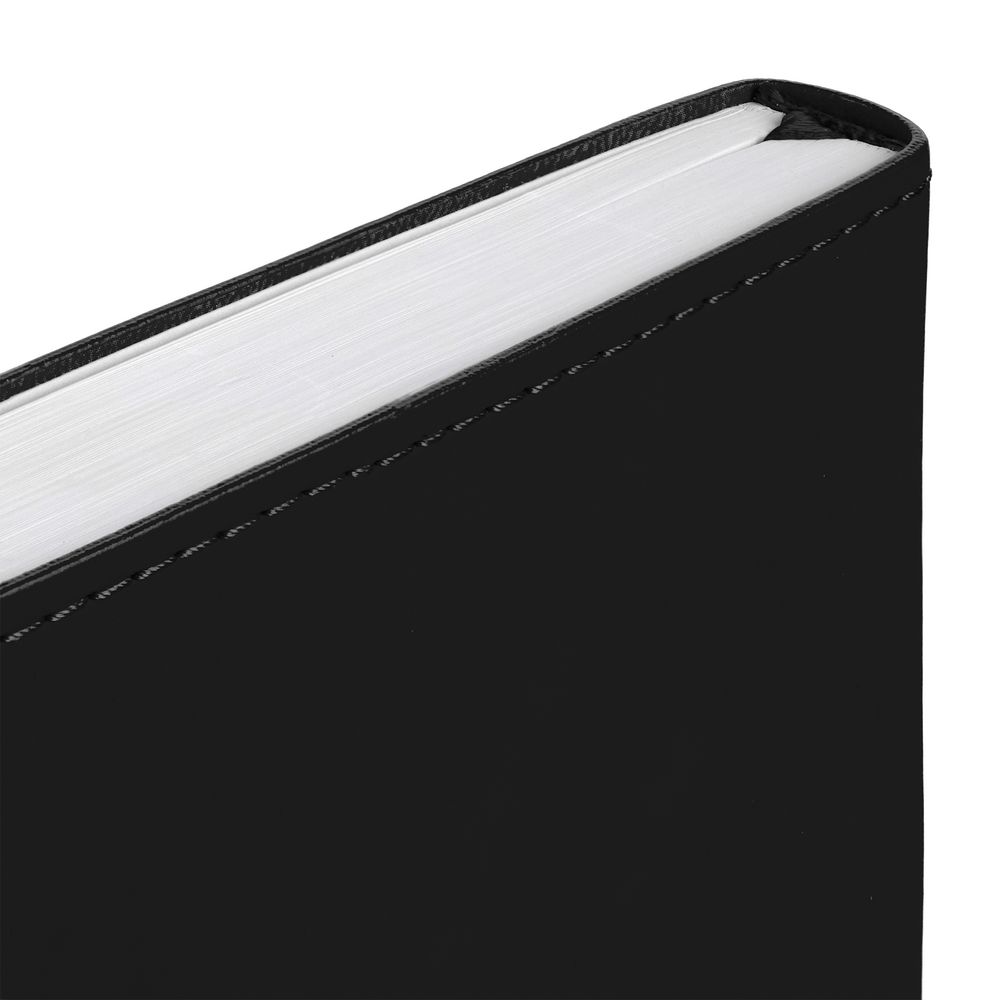 Ежедневник с гибкой обложкой из материала Soft Touch, черный АА и Latte, черный (внутренний материал), дополнен петелькой для ручки из покровного материала, капталом, ляссе и закрашенным срезом обложки в цвет материала.