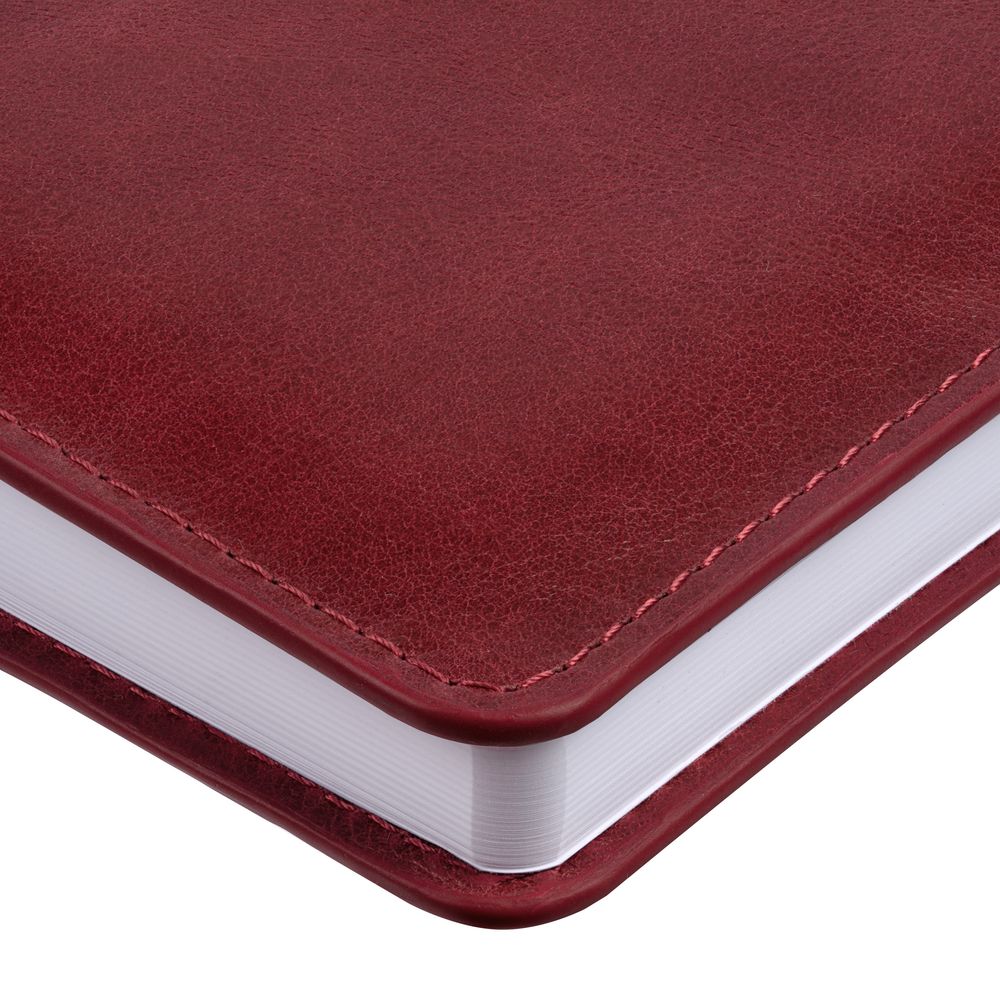 Ежедневник с полутвердой обложкой из натуральной кожи с поролоном. Каптал, репсовое ляссе и окрашенный срез обложки в цвет материала.