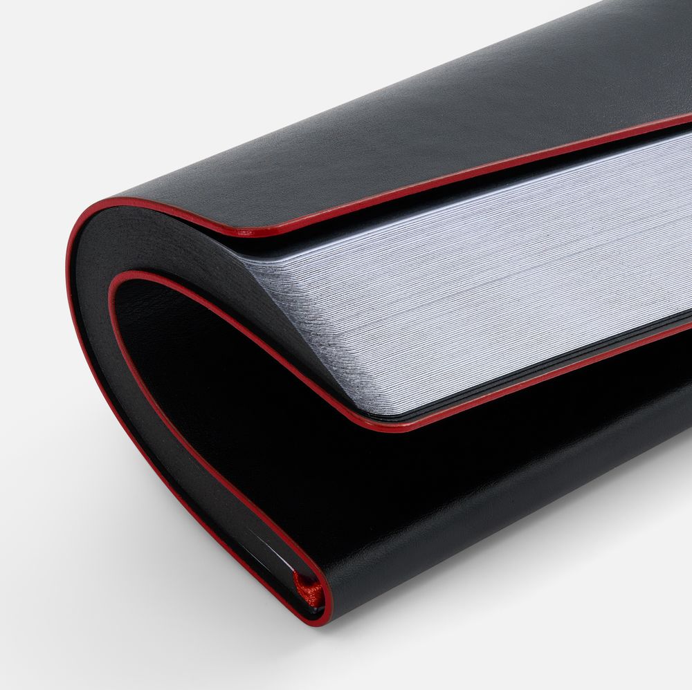 Обложка ежедневника Trait — это максимальная концентрация черного, подчеркнутая яркой полосой цветного среза.