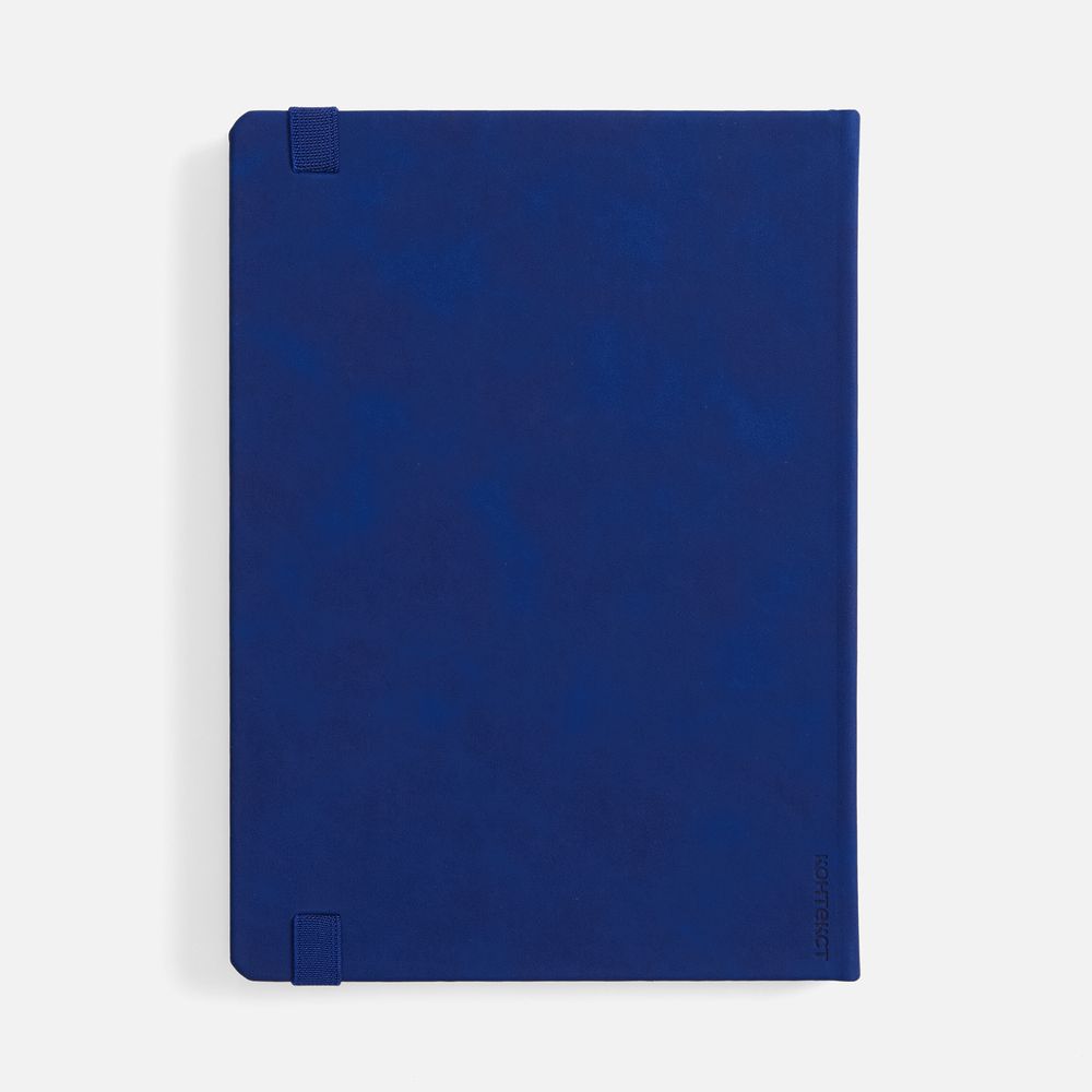 Ежедневник с твердой обложкой, выполнен из материала Nubuck Touch, темно-синий ХХ, дополнен ляссе темно-синего цвета.
