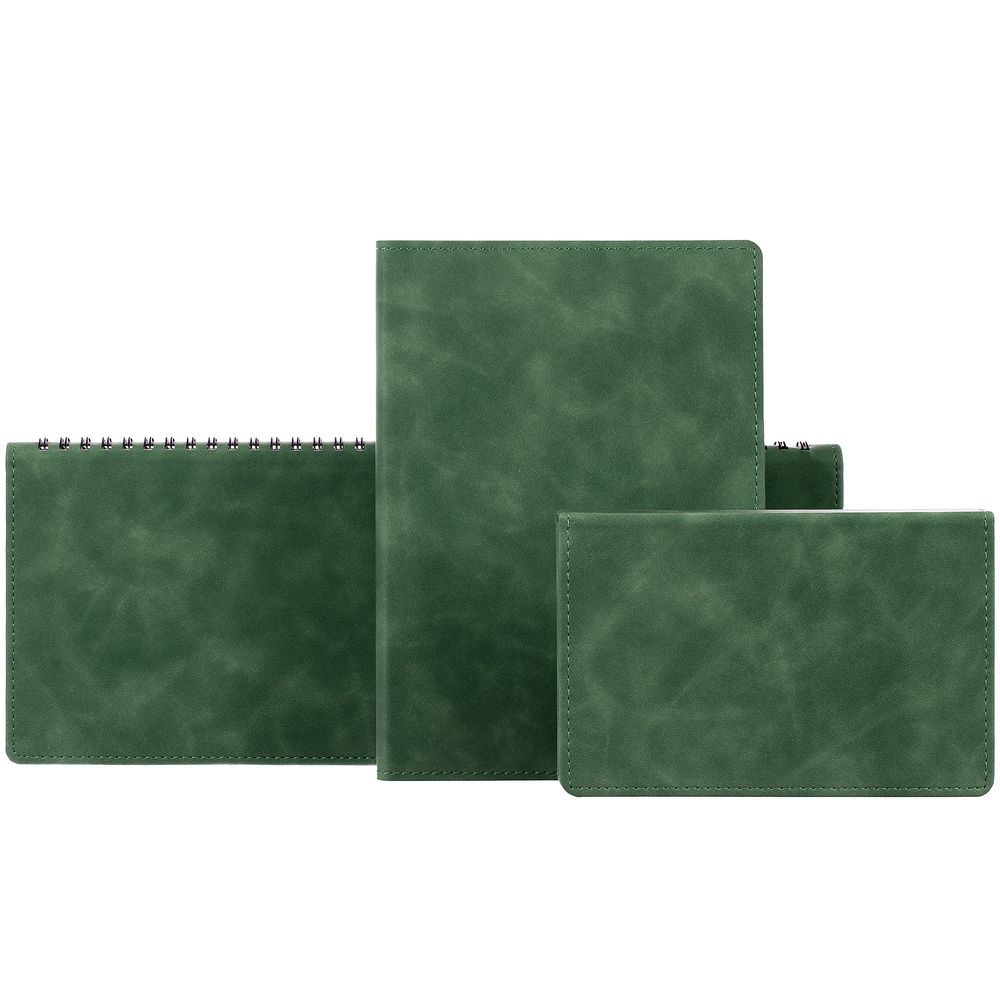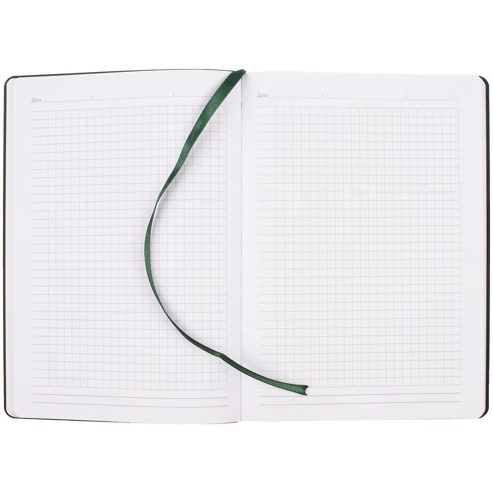 Ежедневник с гибкой обложкой, выполнен из материала Nubuck Touch, зеленый FF, дополнен ляссе темно-зеленого цвета.