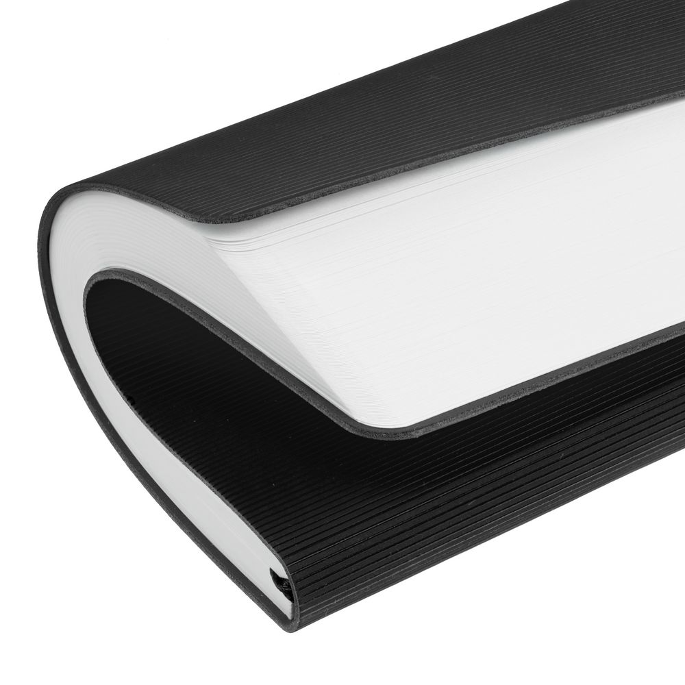 Ежедневник с гибкой обложкой выполнен из материалаSoft Touch Perl, черный АА и Latte, черный (внутренний материал); дополнен ляссе черного цвета и фактурным тиснением обложки.