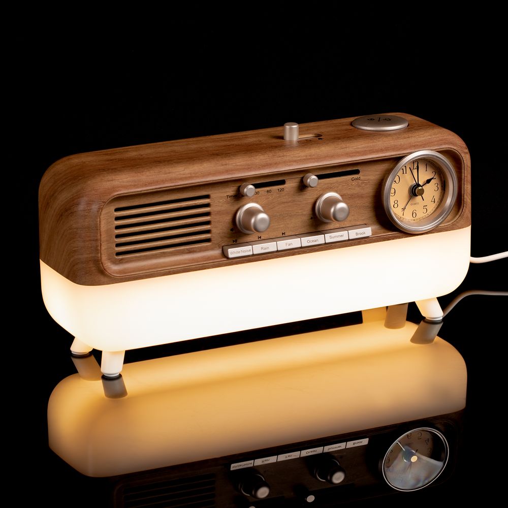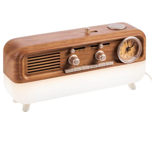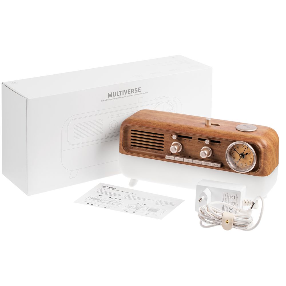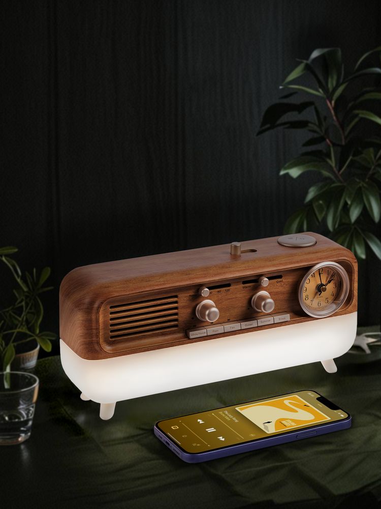 Bluetooth-колонка с аналоговыми часами Multiverse сразу привлекает внимание своей формой, напоминающей ретро-радиолу, но «начинка» у нее вполне современная. Она может транслировать музыку с телефона или наполнить пространство звуками природы, показывать точное время или будить по утрам, служить стильным ночником или интерьерным светильником, а также заряжать другие устройства через USB-порт на задней стенке.