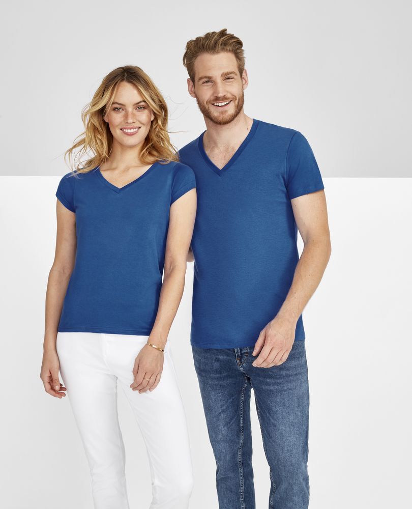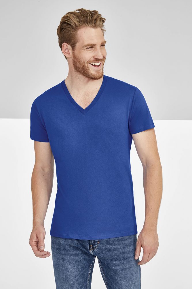 Модная мужская футболка с глубоким V-образным вырезом, отделанным резинкой 1*1, подойдет как для промо-акций, так и в качестве корпоративной униформы. Полугребенной 100% хлопок, двойная прострочка на рукавах и по низу изделия, укрепляющая тесьма по вороту.