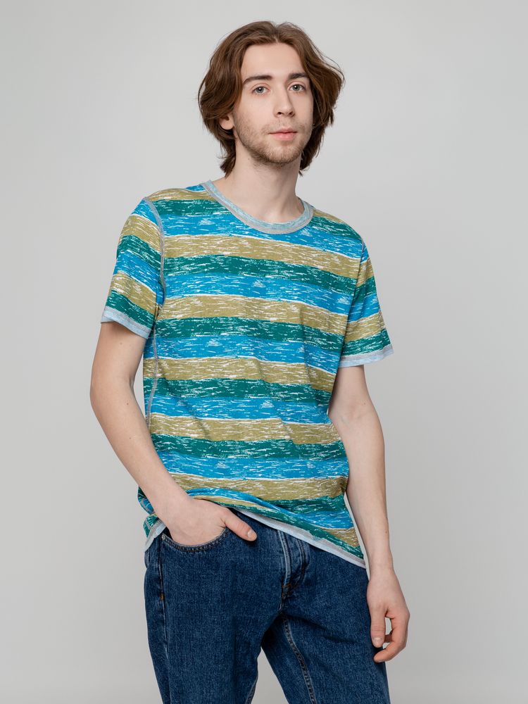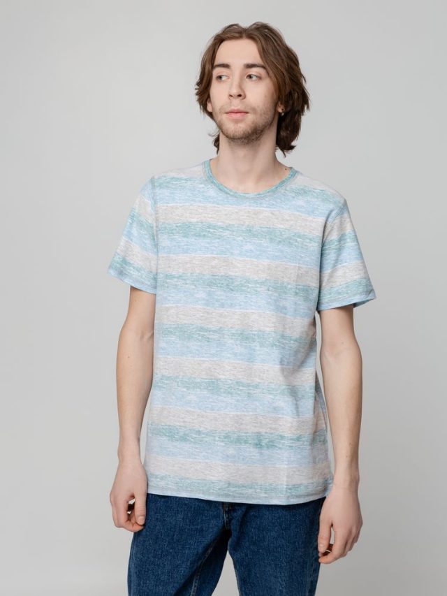 Двусторонняя мужская футболка с круглым вырезом и плоскими швами.