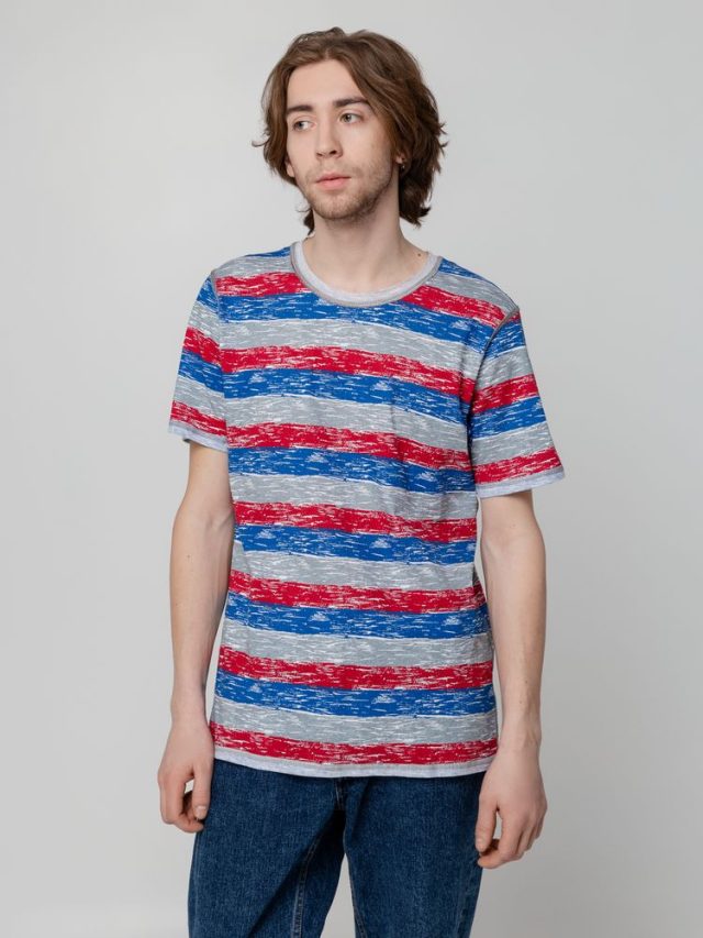 Двусторонняя мужская футболка с круглым вырезом и плоскими швами.