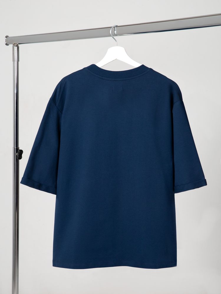 Футболка унисекс свободного кроя со спущенным плечом и смещенными плечевыми швами.