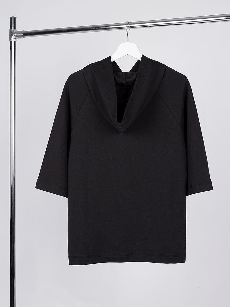 Нестандартная футболка Neofit с капюшоном создана для тех, кто следит за трендами и ценит комфорт. Фигурные рукава по передней полочке подчеркивают уникальность изделия, а продуманная конструкция рукавов реглан сзади обеспечивает свободу движений.
