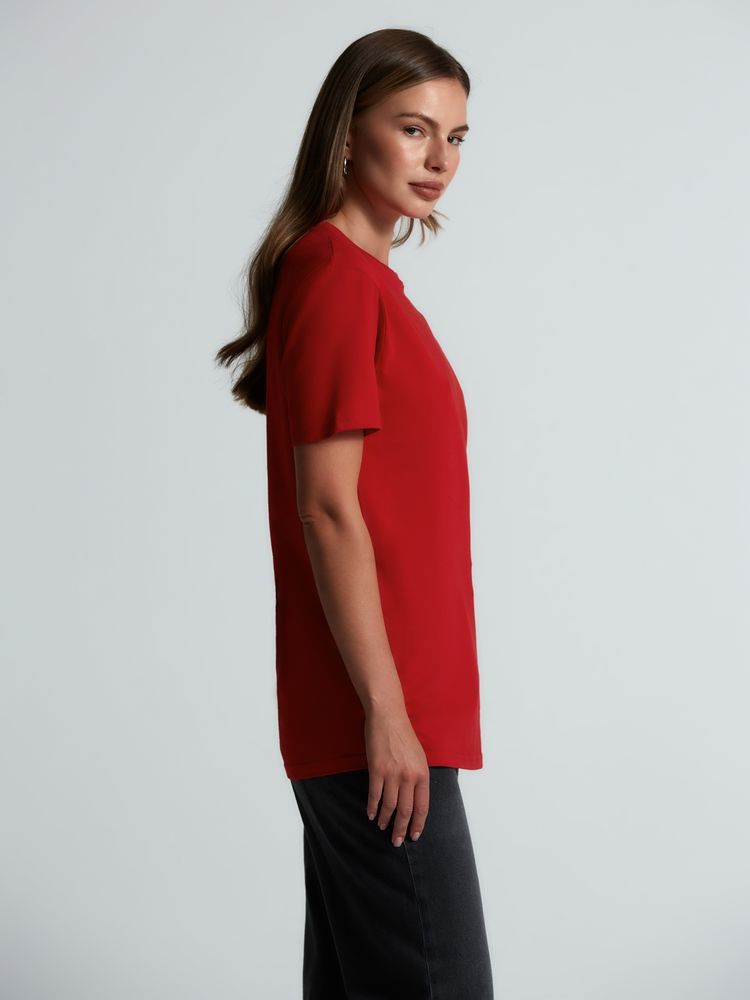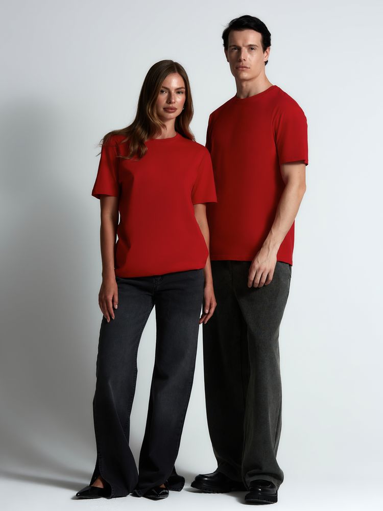 Базовая футболка унисекс без боковых швов. Полотно прошло активное крашение и предварительную усадку, благодаря чему изделие надолго сохраняет цвет и форму.