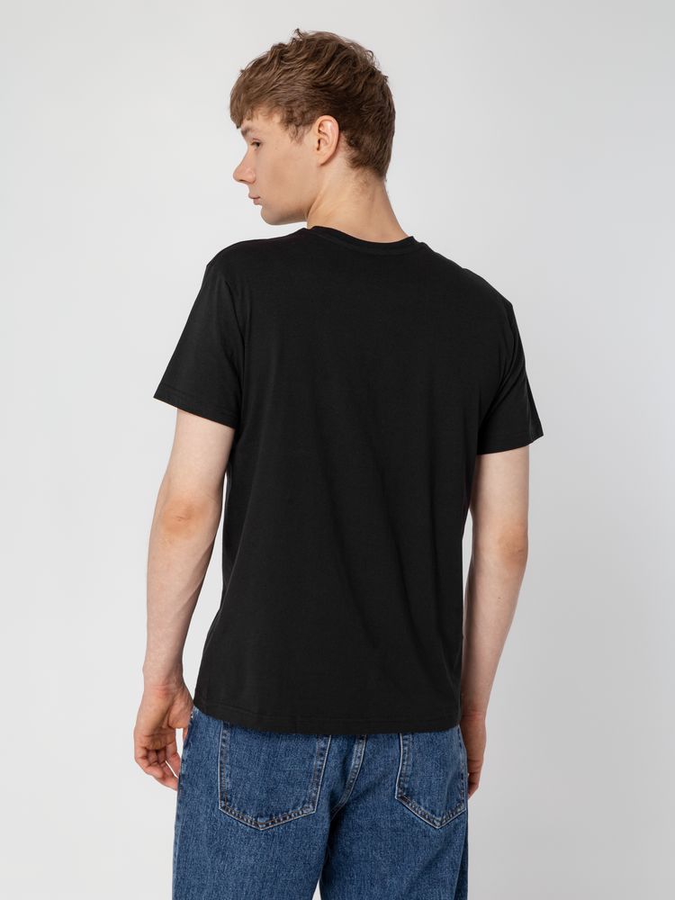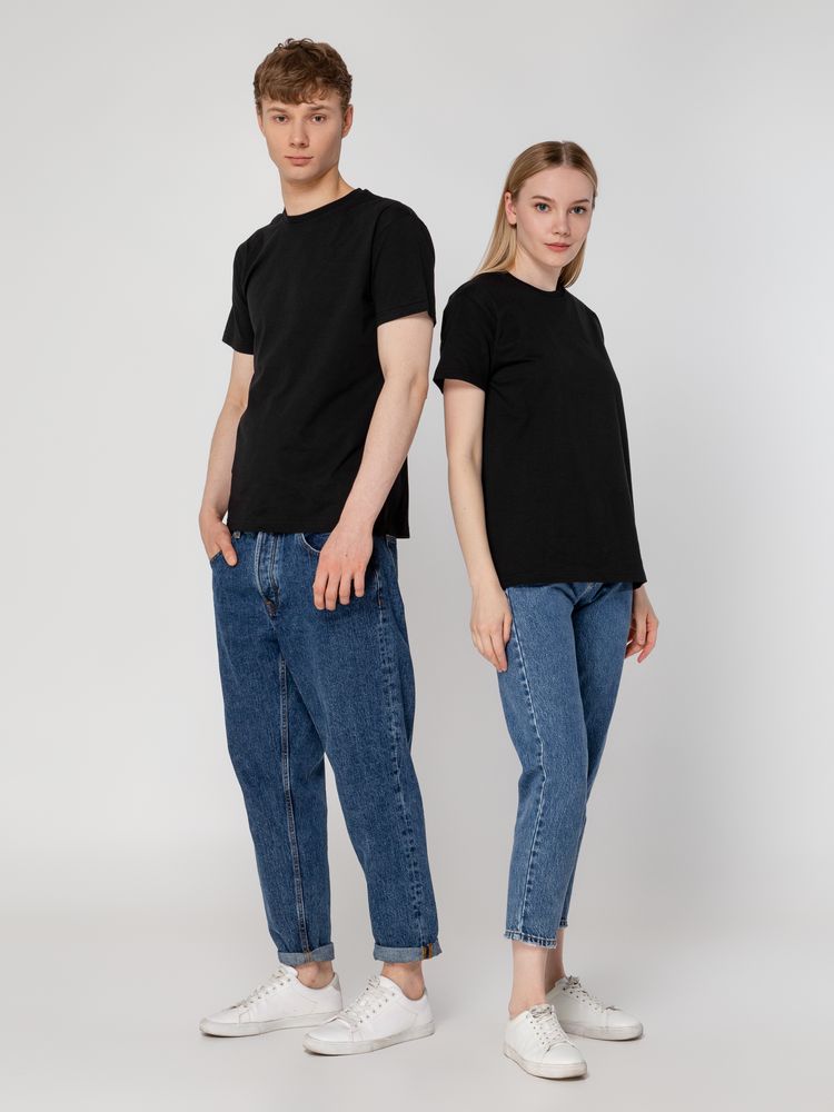 Базовая футболка унисекс прямого силуэта без боковых швов (размеры XS–4XL) или с боковыми швами (размеры 5XL–6XL).