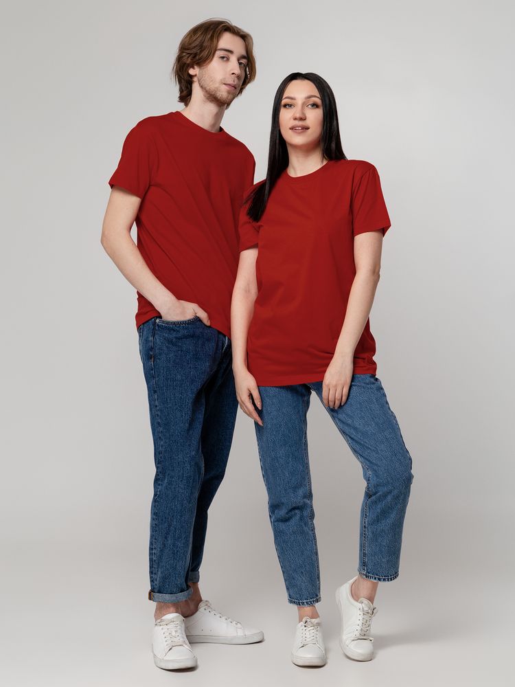 Базовая футболка унисекс прямого силуэта без боковых швов (размеры XS–4XL) или с боковыми швами (размеры 5XL–6XL).