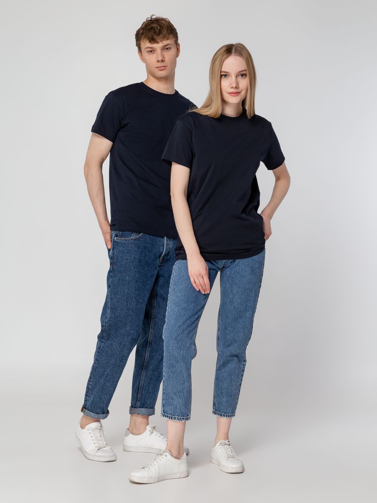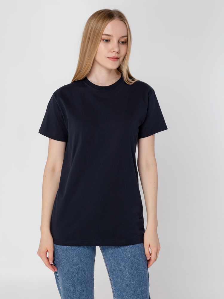 Базовая футболка унисекс прямого силуэта без боковых швов (размеры XS–4XL) или с боковыми швами (размеры 5XL–6XL).