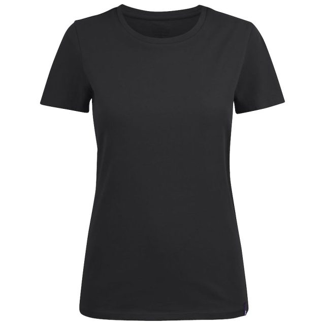 Женская футболка с круглым вырезом. Двухслойная резинка предохраняет воротник от деформации после стирки.