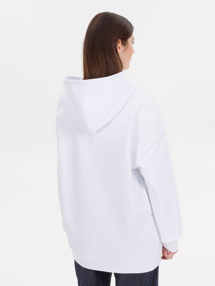 Худи унисекс со спущенным плечом и карманом-кенгуру расслабленного силуэта.