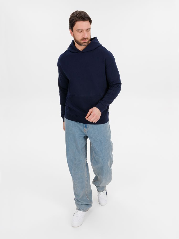 Худи унисекс со спущенным плечом и карманом-кенгуру расслабленного силуэта.
