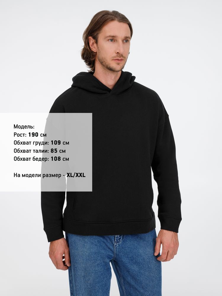Худи унисекс оверсайз со спущенным плечом и внутренним карманом-кенгуру.